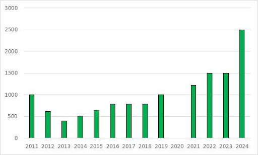 Nombre d’arbres distribués lors des distributions d’arbres depuis 2011