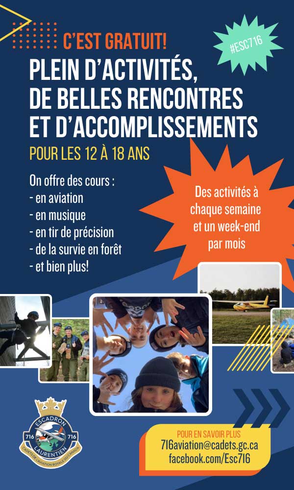Pour les dates d’inscription, restez au courant en vous inscrivant à l’infolettre municipale ou en consultant les journaux locaux vers la fin du mois de novembre.